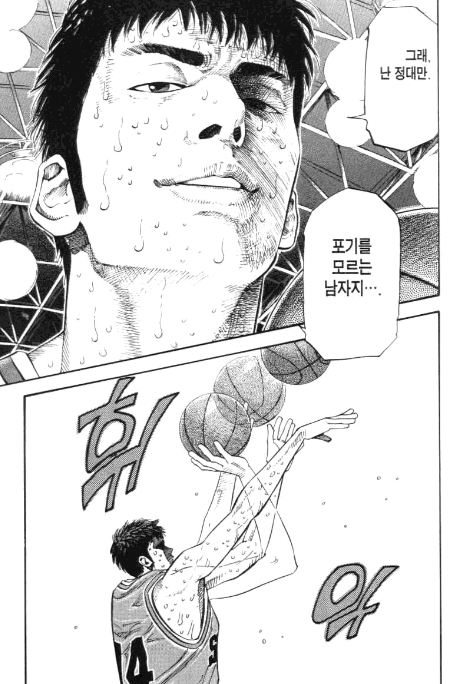 강백호는 이 급박한 상황에서 평온한 표정으로 그동안 배웠던 슛의 기본을 읊조린다...