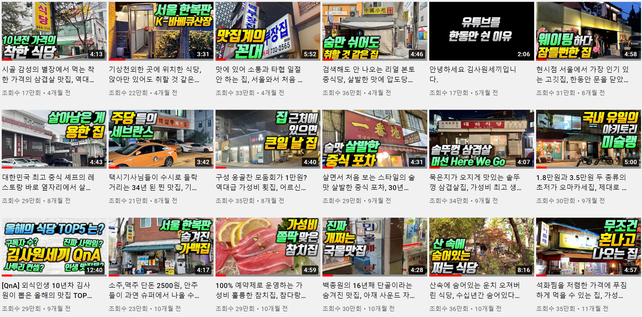 맛집 유튜버로 유명한 김사원세끼(ㄱㅅㅇㅅㄲ)님이 소개한 맛집들을 정리했습니다